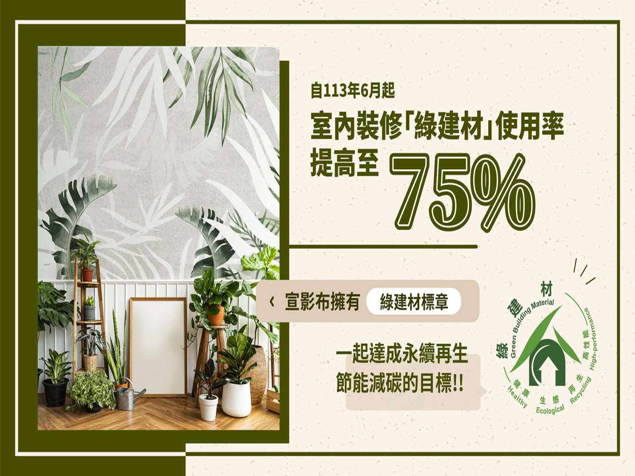 【綠建材】 使用率提高至75%